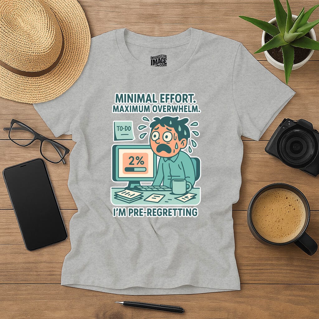 When your to-do list is a mile long, your progress bar is stuck at 2%, and your anxiety is at 100%—you might be in full-blown pre-regret mode. This hilariously stressed-out cartoon captures the universal mood of being totally overwhelmed before you’ve even started. Perfect for procrastinators, anxious overthinkers, or anyone living that “barely hanging on” life with a side of coffee and panic.