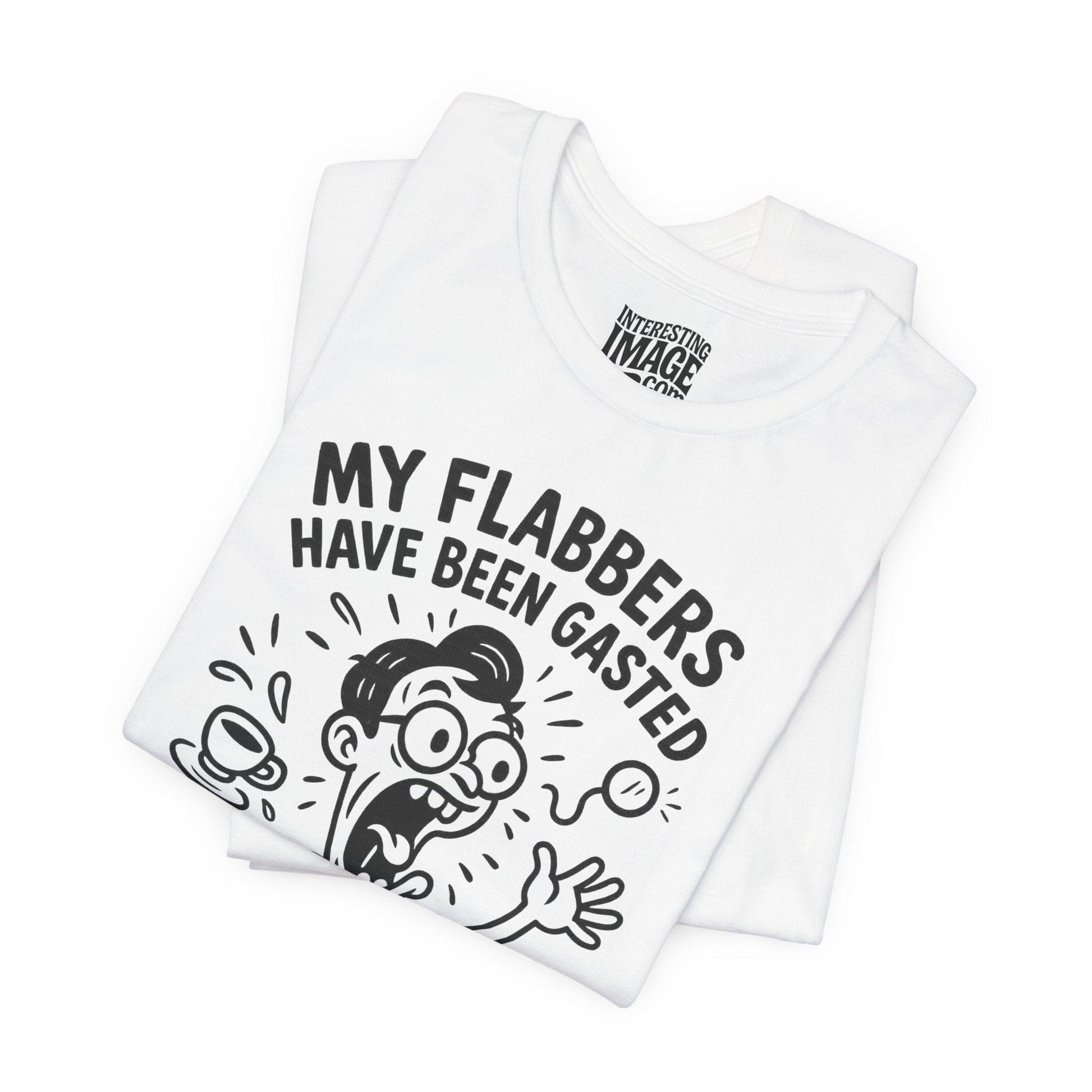 This wildly expressive t-shirt captures a moment of cartoon chaos—our startled, monocle-wearing character launches their coffee cup skyward in pure disbelief! With the hilarious phrase “My Flabbers Have Been Gasted,” this design flips the classic word flabbergasted into a bold, unexpected punchline. It's the perfect tee for lovers of absurd humor, retro cartoon aesthetics, and clever wordplay that gets people doing double-takes.