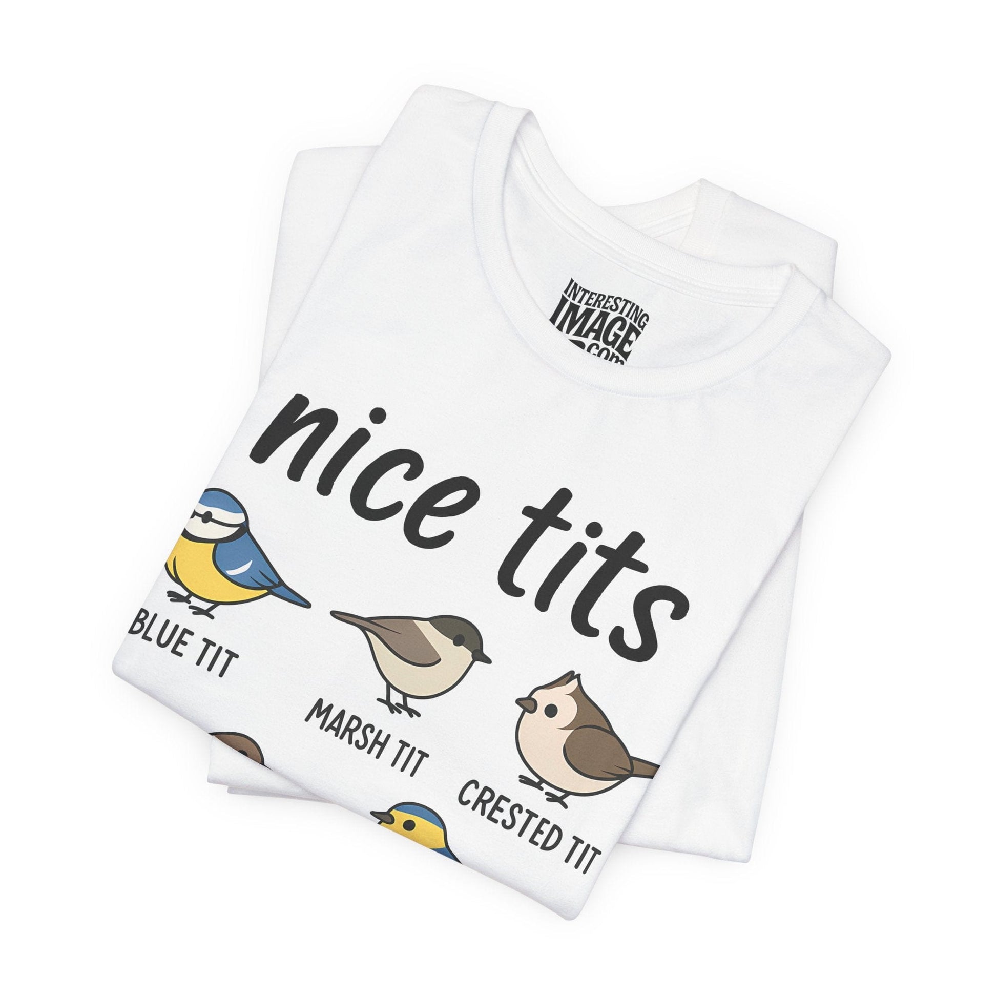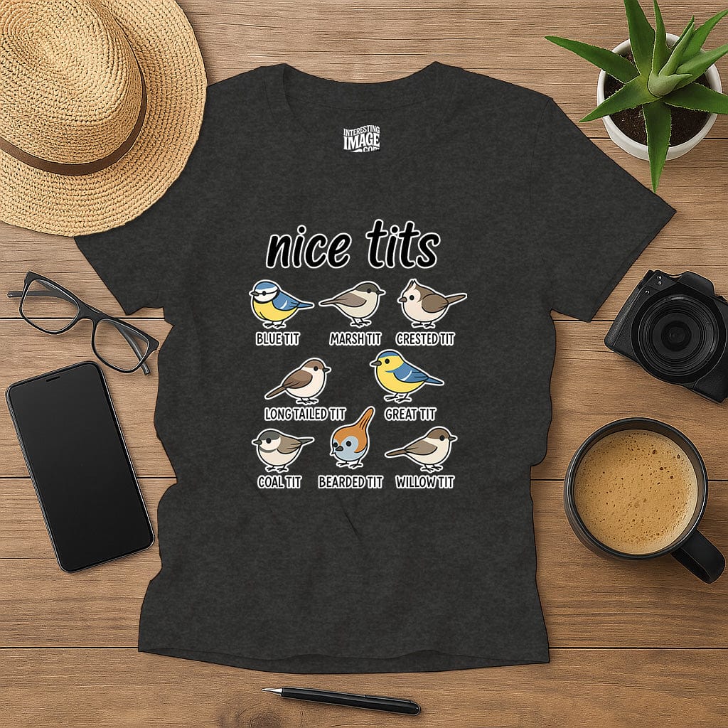 Add a cheeky twist to your love of birdwatching with this humorous illustrated chart featuring various tit bird species. From the Blue Tit to the Bearded Tit, each bird is rendered in a clean, cute cartoon style under the bold heading “Nice Tits” — a playful pun that makes this design perfect for nature lovers with a sense of humor. Great for t-shirts, mugs, posters, or gifts for ornithologists and pun fans alike!