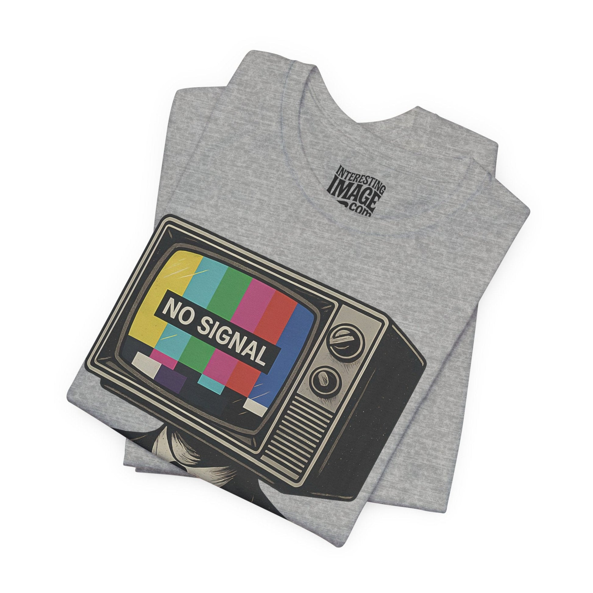 Dive into a stylish wave of surreal ennui with this thought-provoking t-shirt design. A suited figure with a vintage TV for a head, broadcasting a "NO SIGNAL" test pattern, captures that all-too-familiar feeling of mental disconnect. The caption "Nobody’s Home." delivers a perfect punch of dry, existential wit. Retro-inspired and darkly humorous, this design speaks to those who feel a little out of sync with the world—or themselves.