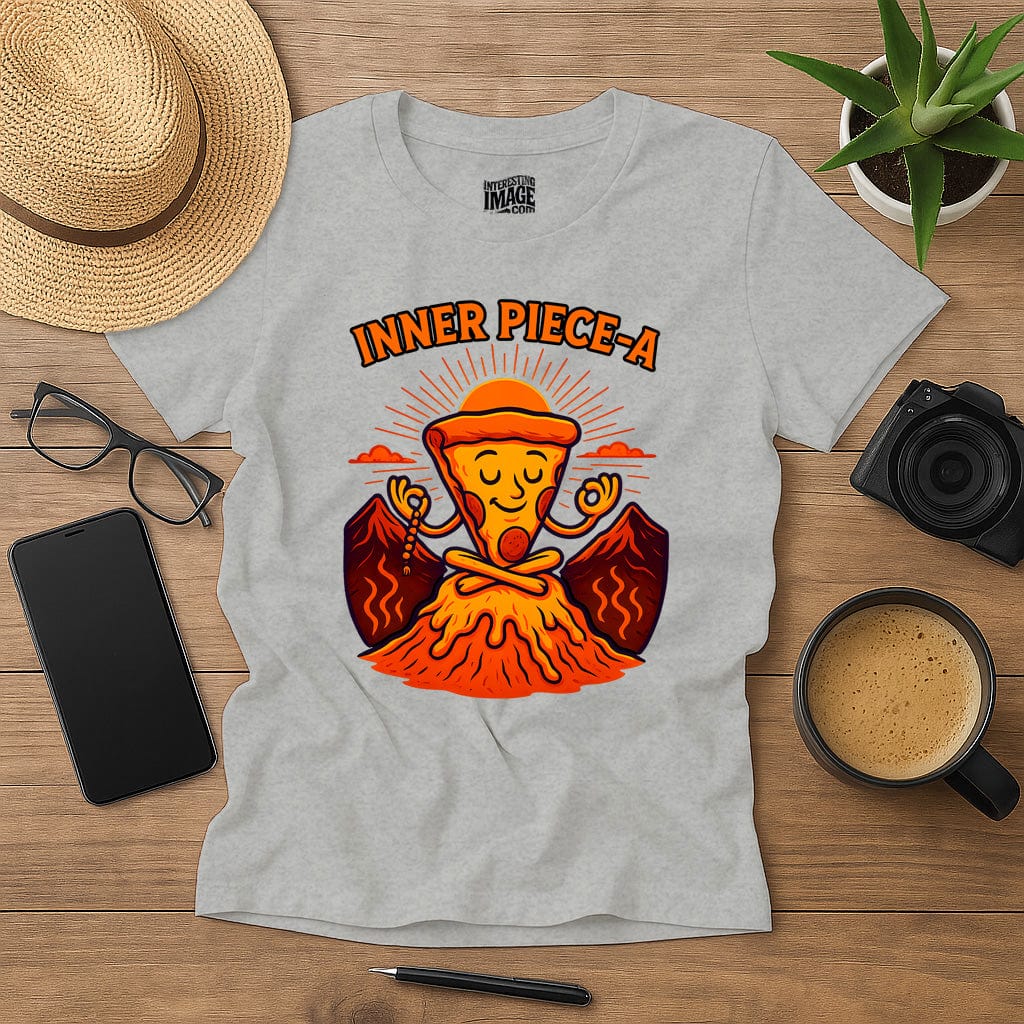 Behold the sacred slice. Rising like the sun from a molten volcano of cheese, this meditating pizza monk is the patron saint of chill — and cravings. With pepperoni chakras, a lava base, and eternal calm, it’s the perfect tee for anyone who believes in peace, mindfulness… and extra cheese.