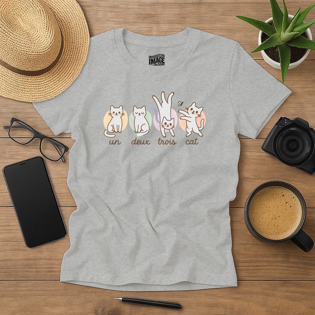 Add a little je ne sais paw to your wardrobe with this irresistibly cute cat pun design! Featuring four charming cartoon cats, each representing a French number — “un, deux, trois... cat” — this artwork brings a delightful twist to counting with a playful feline finale. Each cat shows more personality as the count progresses, from calm to chaotic, with pastel blush, sparkly eyes, and watercolor-style backgrounds for added charm. Perfect for cat lovers, pun enthusiasts, French speakers, or anyone who loves cozy, whimsical designs.