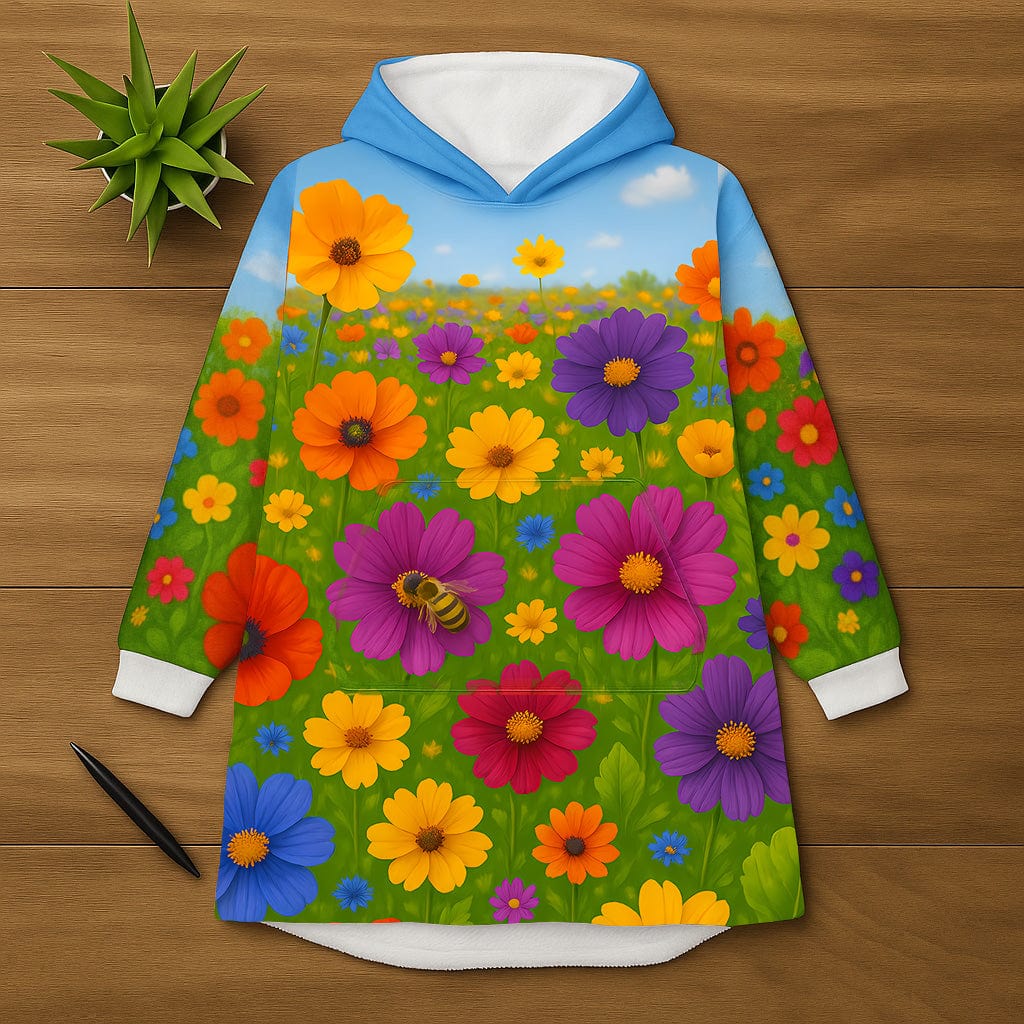 Step into a burst of color with the Wild Bloom Dreamscape hoodie – a radiant field of vibrant wildflowers brought to life in stunning detail. Featuring an all-over sublimation print that wraps you in bold hues of fuchsia, indigo, sunflower yellow, poppy red, and tangerine, this hoodie is the perfect blend of comfort and eye-catching art. Whether you’re turning heads on the street or just adding a splash of joy to your everyday style, this piece makes nature wearable in the most brilliant way possible.